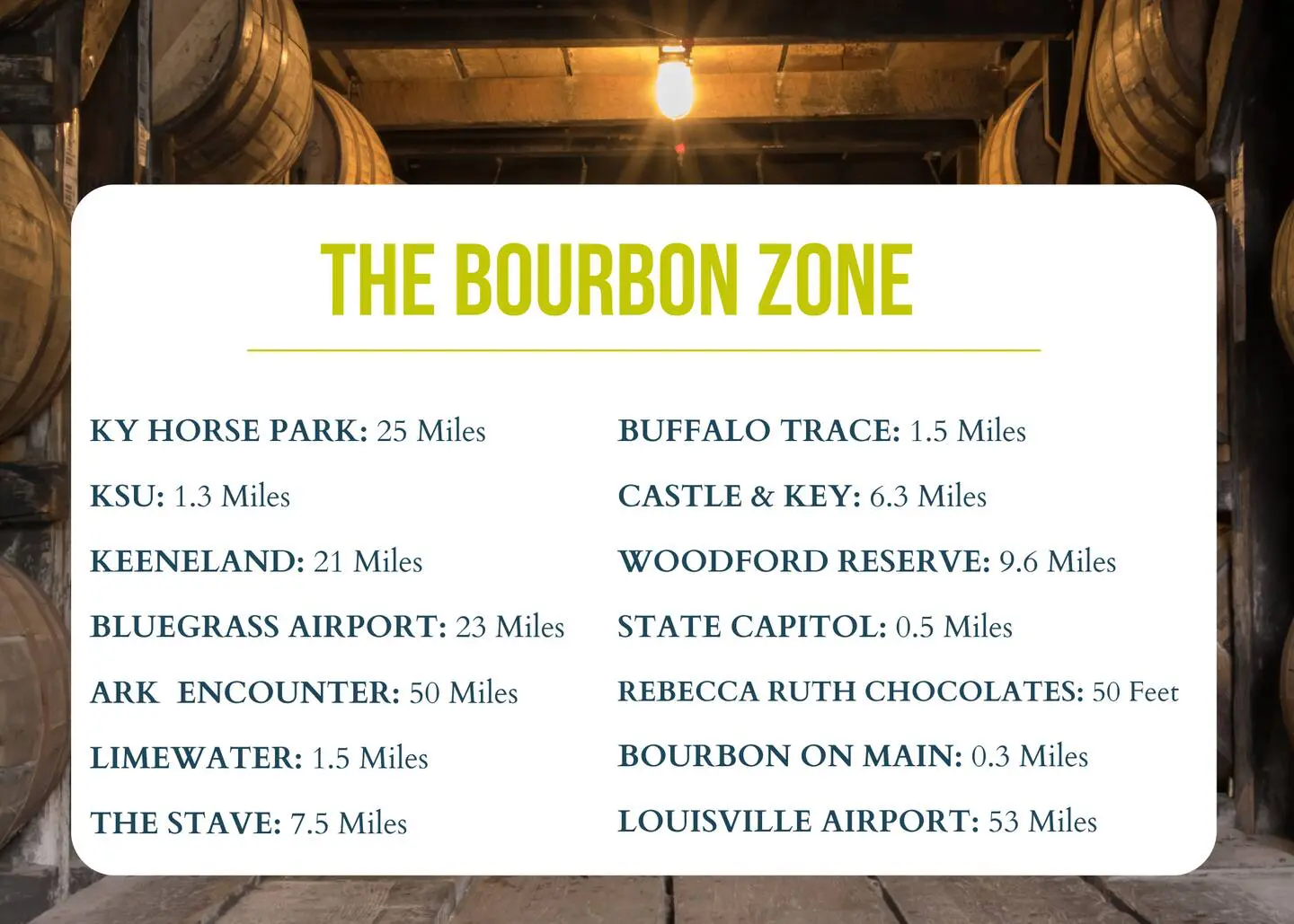 1.5mi to Buffalo Trace/Walk to Downtown Frankfort