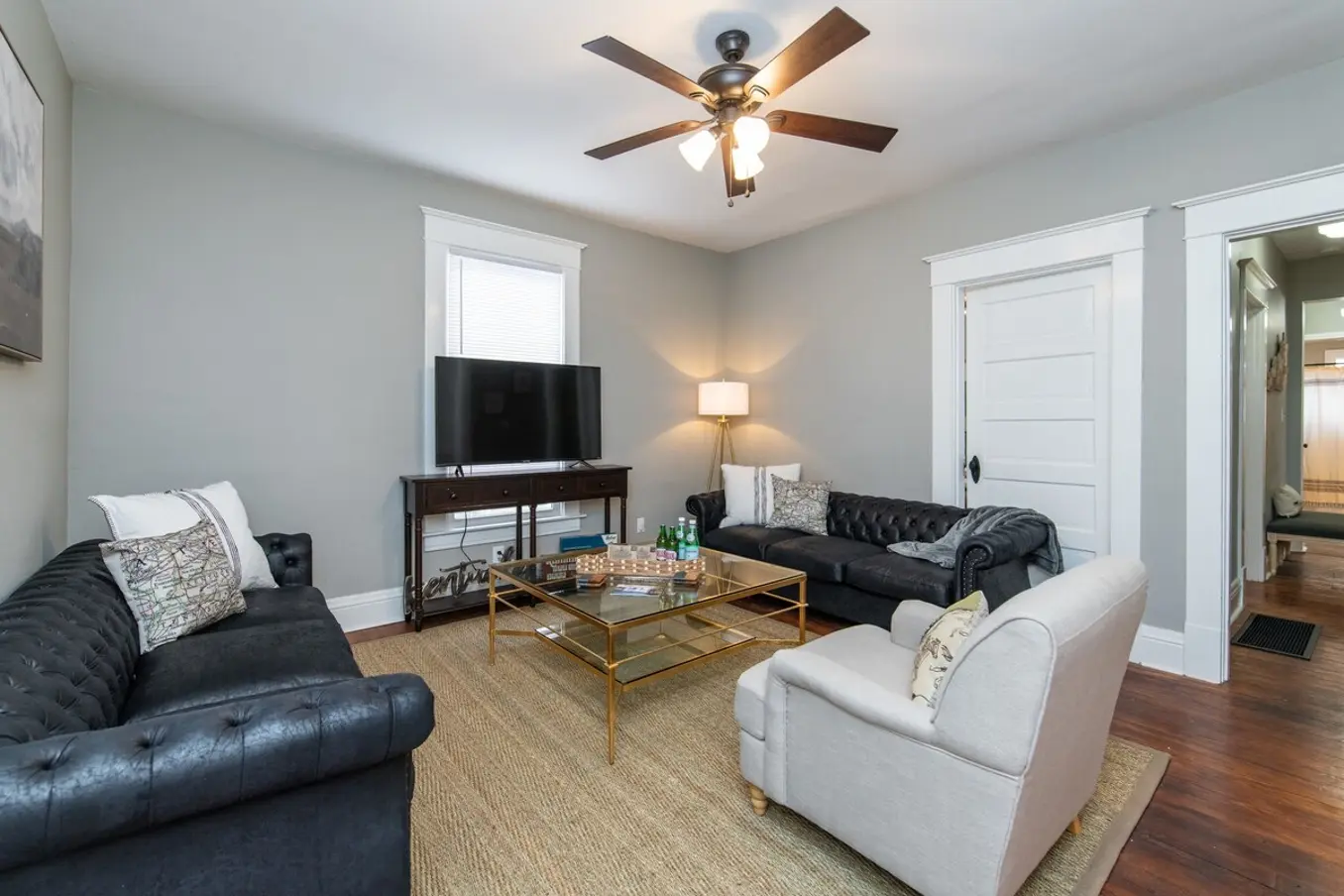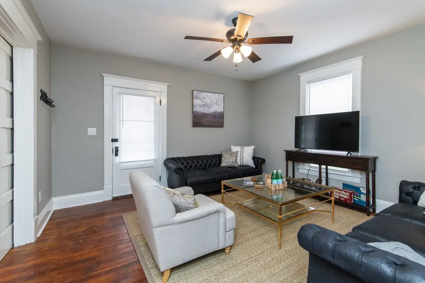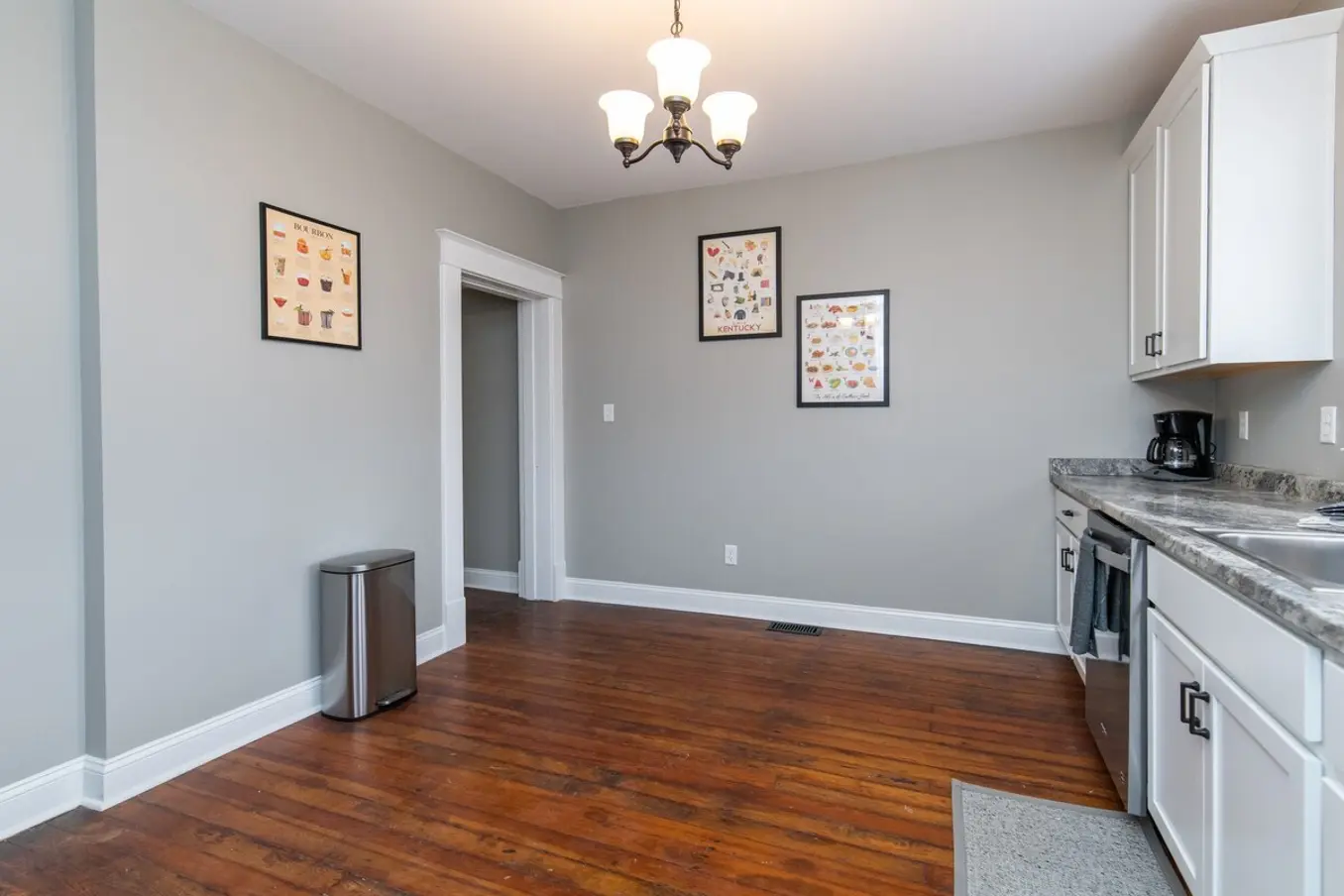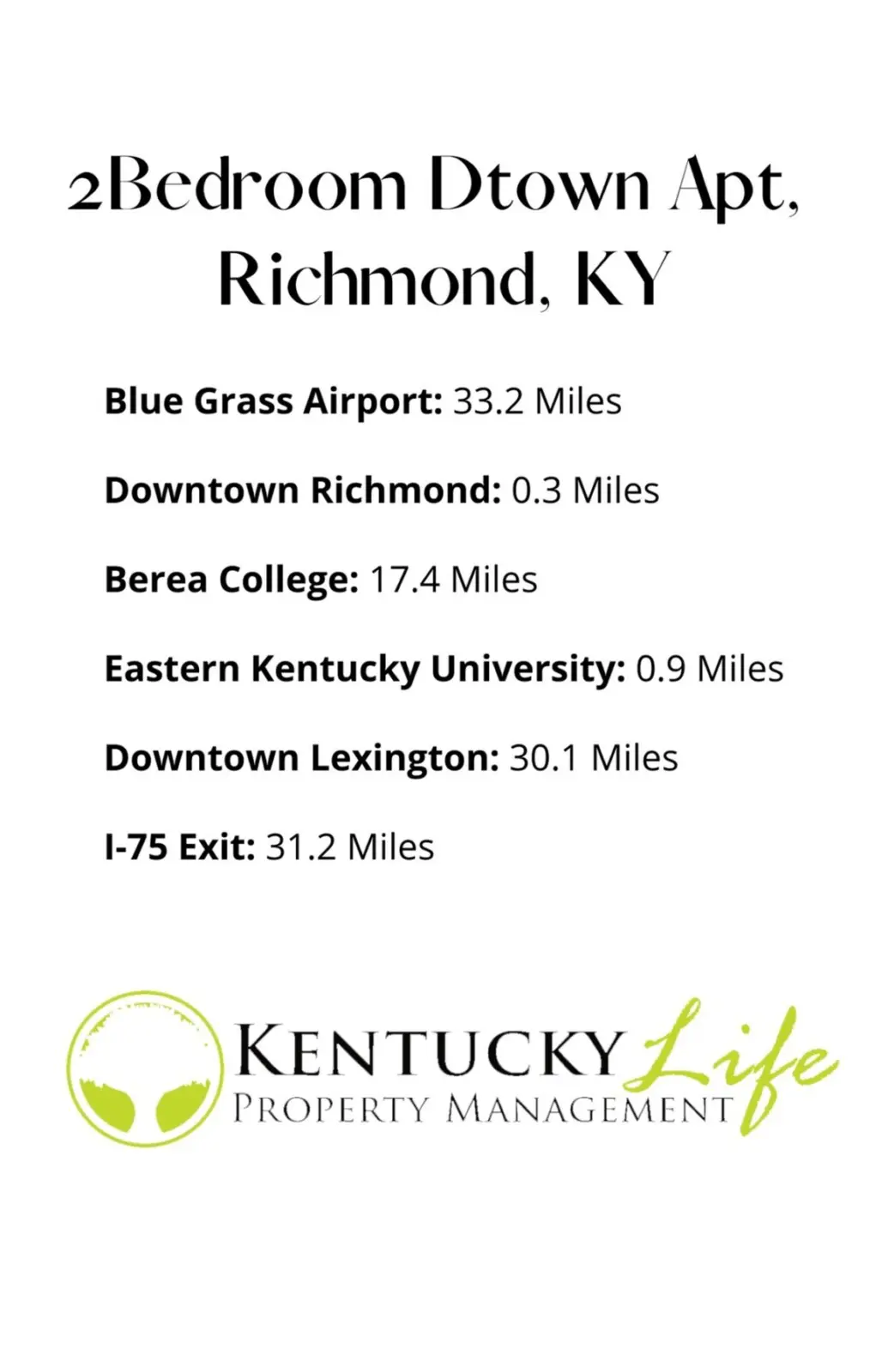 The Colonels Apartment is a freshly renovated 3bedroom 1bath downtown Richmond apartment. This historic building has just undergone a major facelift and the owners spared no expense! Full of character, comfort, & all the modern-day amenities guests will truly live like a local while only being minutes from EKU Campus, Downtown Richmond, I-75, Berea, Lexington & so much more. This unit features parking, fully stocked kitchen, ROKU TV’s, Wi-Fi, washer/dryer & so much more!