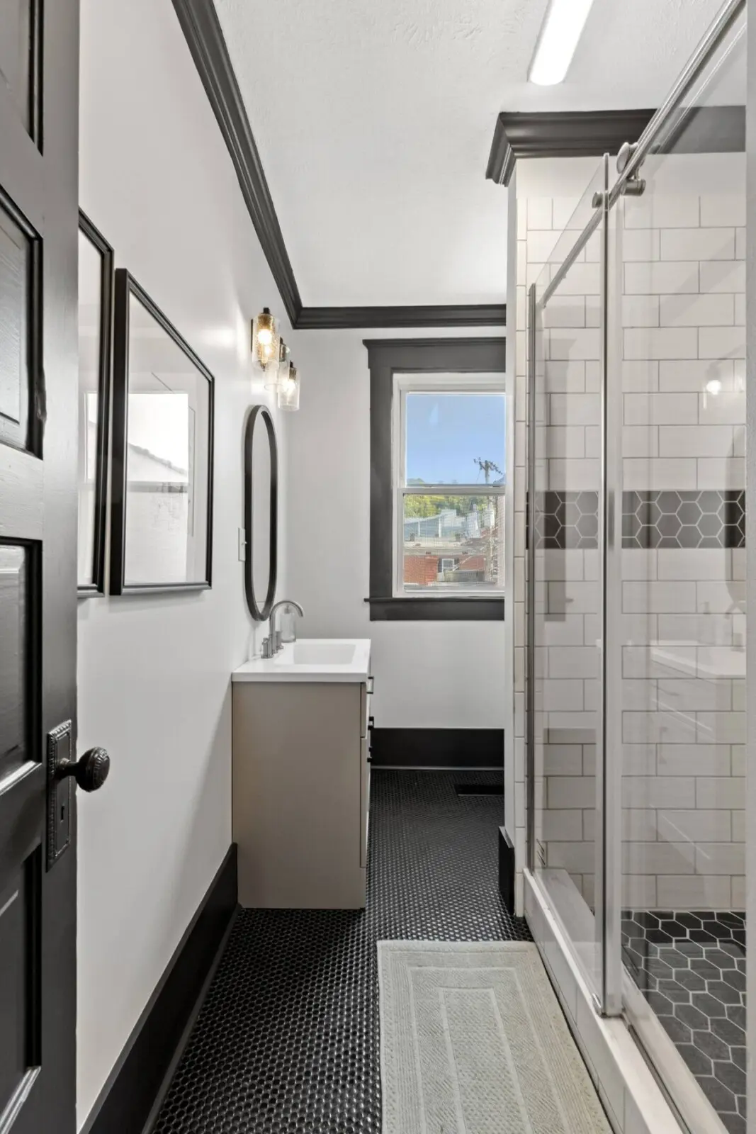 One full modern bath with essentials and lux finishes
