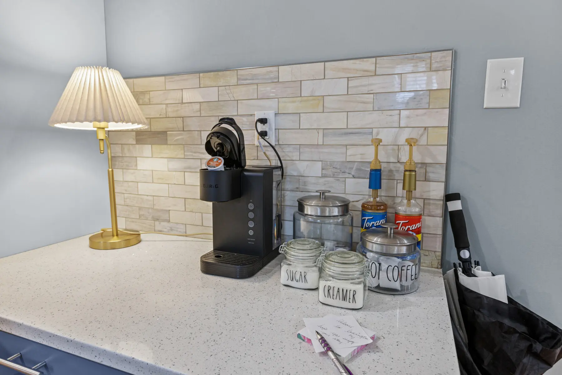 The kitchen is equipped with all of the essentials for cooking and enjoying home cooked meals. Guests will have access to pots and pans, baking dishes, cooking utensils, coffee maker, filters, and coffee.