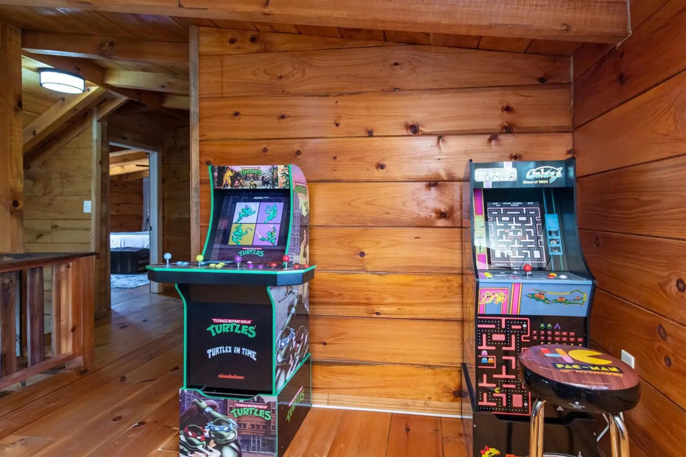 Our second floor features a loft game room with board games, TV, arcade games and so much more! Guests will also have access two another bedroom featuring a King Bed and our 4th Bedroom features a King Bed with bathroom en-suite.