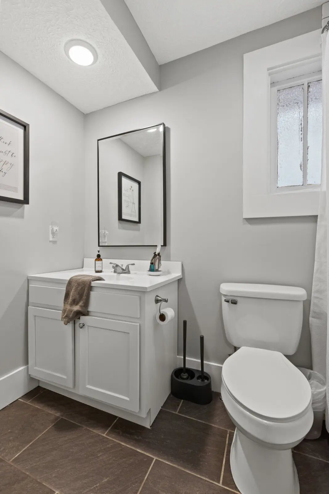 Please note that the full bathroom downstairs is located in the master bedroom. This may be fine with families that have kids sleeping in the guest bed or friends who do not mind each other walking in and out of their bedroom to get to the bathroom. probably not ideal for 2 couples to stay here as bedrooms are not fully private.