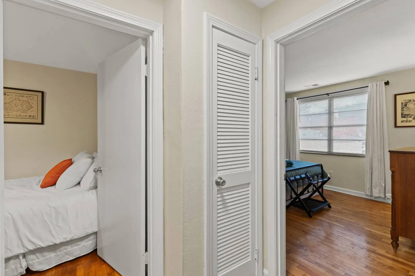 This charming home has 2 bedrooms with 2 beds memory foam mattresses. The primary bedroom offers a king bed, while our second bedroom has a queen bed. We do provide all linens for beds and a set of towels per guests. The two bedrooms will share the two full bathrooms located in the hallway.
